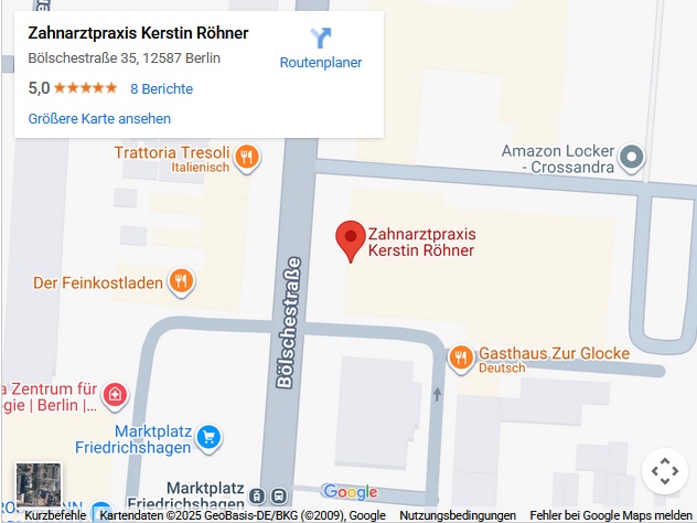 ©2017 | Zahnarztpraxis Kerstin Röhner | Bölsche Strasse 35 | 12587 Berlin | T.: 030 - 645 18 80 | F.: 030 - 6409 04 14 |  praxis.roehner-tost(at)t-online.de